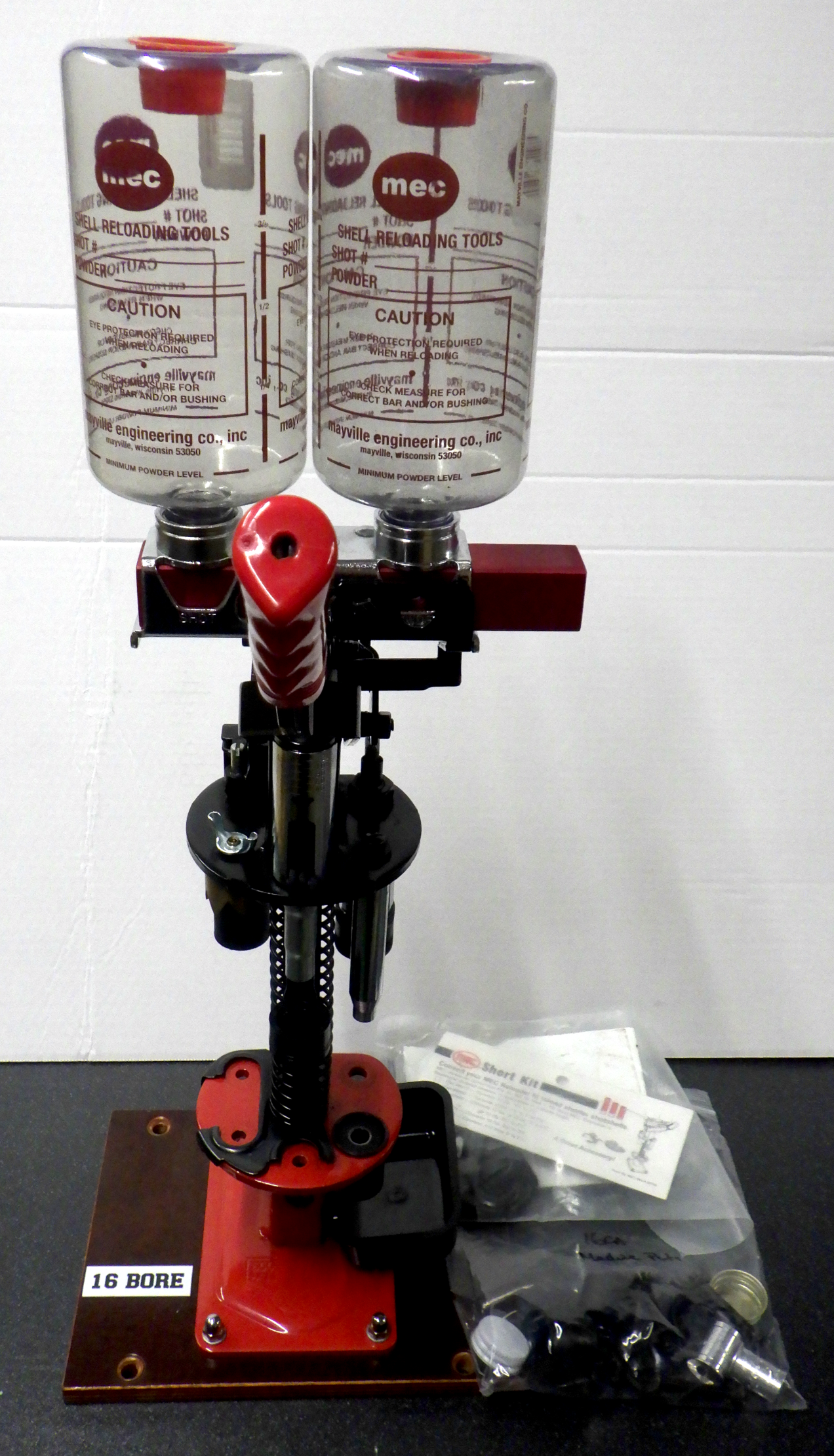 MEC 16GA 600JR Single Stage Loader - This loader is 2nd hand but very clean and looks nearly new. Comes complete with 3 x powder bushings, 28g Lead Shot Charge bar, Brass Crown Crimer and Short Kit for loading 2 1/2" Cartridges.