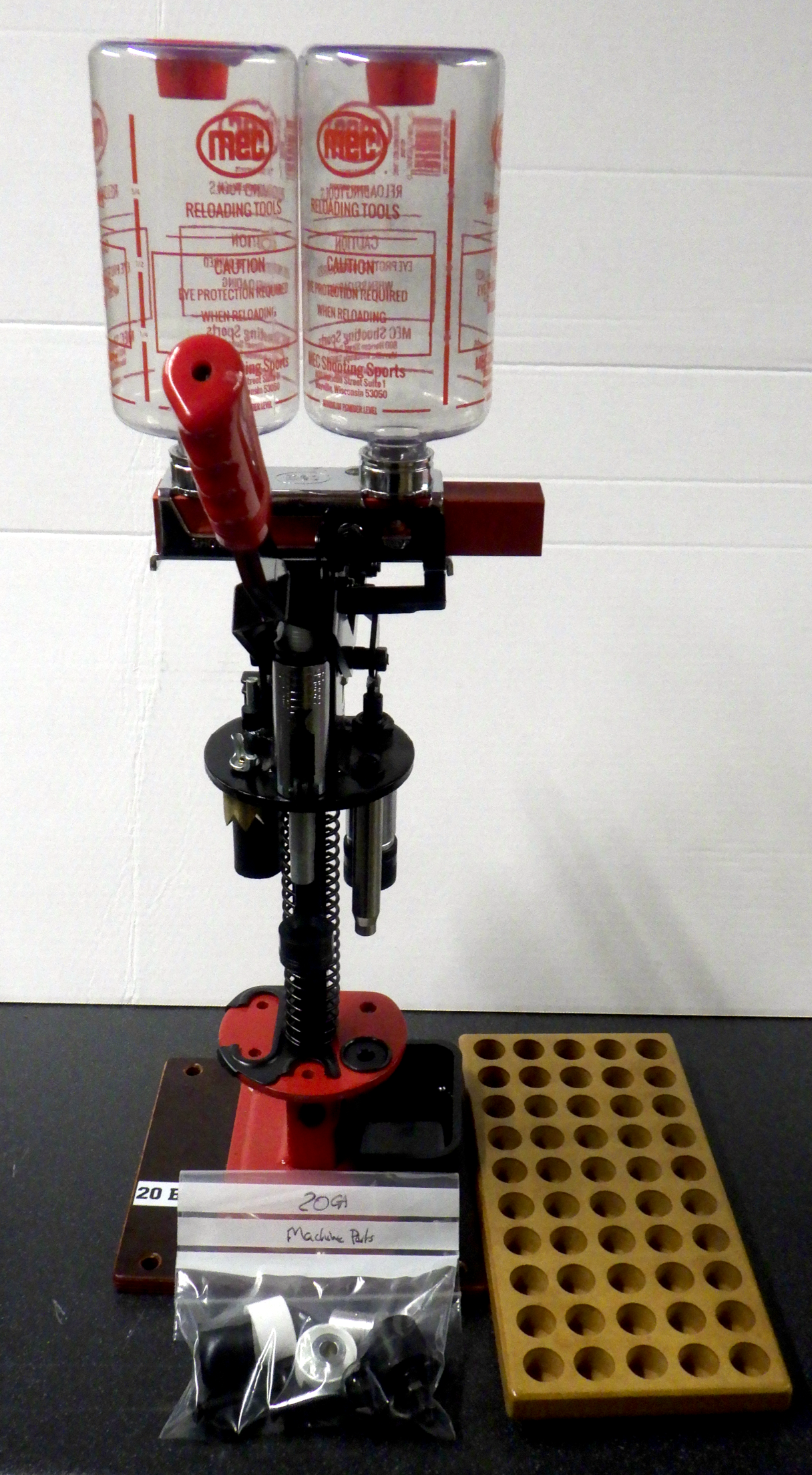 MEC 20GA 600JR Single Stage Loader - This loader is 2nd hand but very clean and looks nearly new. Comes complete with 3 x powder bushings, 24g Lead Shot Charge bar, Brass Crown Crimer and 20GA Wooden Case Tray.